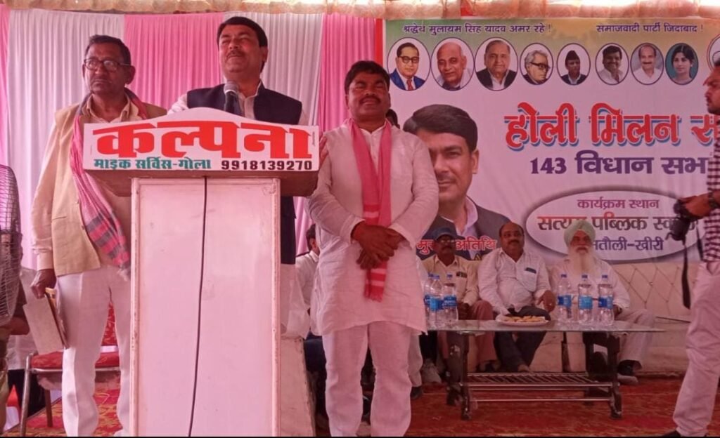 लखीमपुर खीरी जनपद के मितौली क्षेत्र में समाजवादी पार्टी का होली मिलन समारोह आयोजित किया गया, जिसमें धौरहरा सांसद आनंद भदौरिया मुख्य अतिथि के रूप में शामिल हुए। कार्यक्रम में नेताओं और कार्यकर्ताओं ने एक-दूसरे को होली की शुभकामनाएं देते हुए आपसी मतभेद भुलाकर 2027 के विधानसभा चुनाव में जीत हासिल करने का संकल्प लिया।