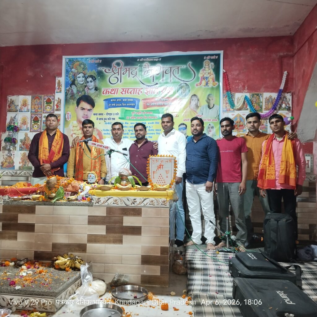 फर्रुखाबाद — खुदागंज काली नदी सेतु के निकट स्थित प्राचीन श्री सिद्धगुफा सरकार हनुमान मंदिर में आयोजित श्रीमद् भागवत कथा के छठवें दिन सोमवार को बड़ी संख्या में श्रद्धालु पहुंचे। पूरे मंदिर परिसर में भक्ति और आस्था का माहौल बना रहा।